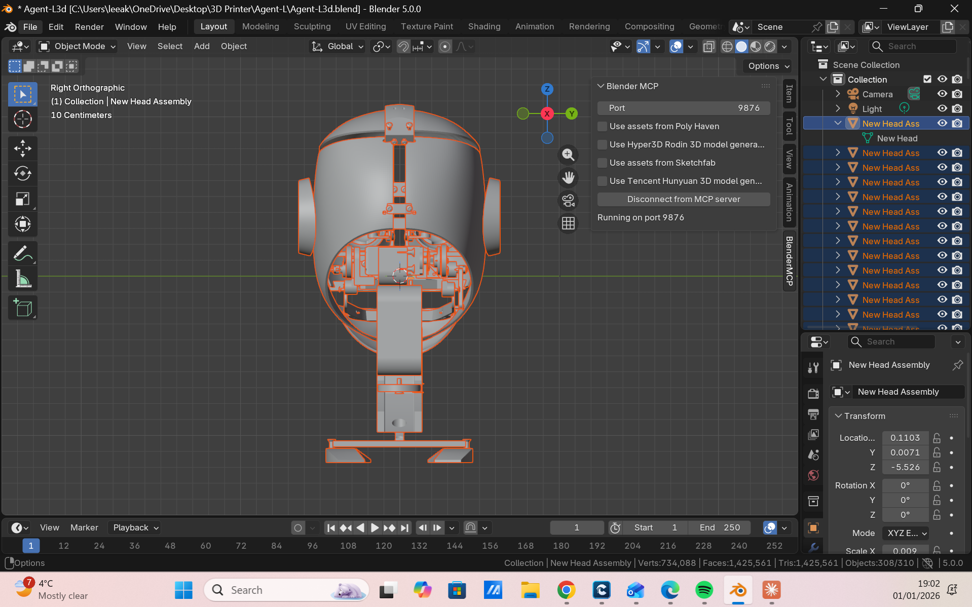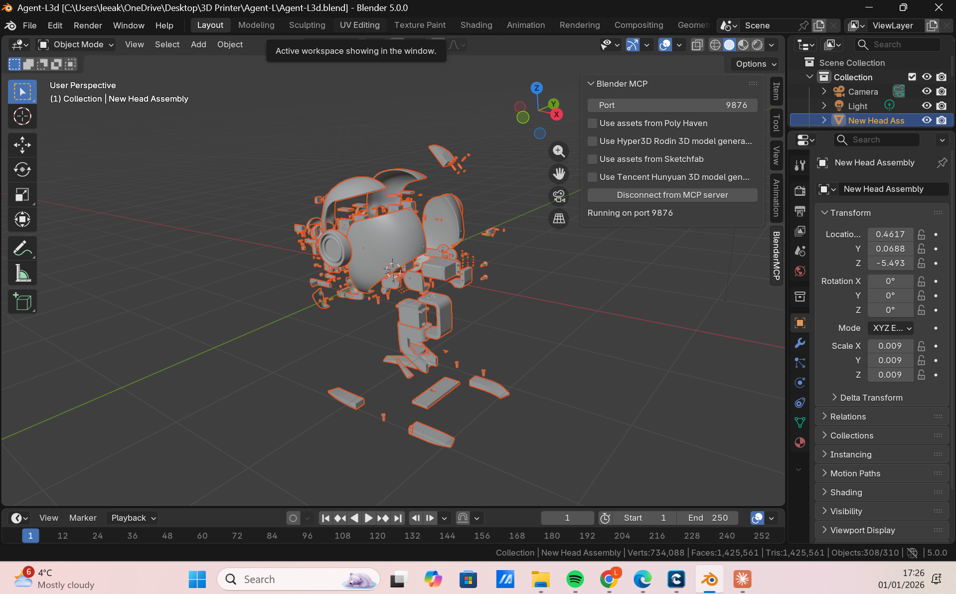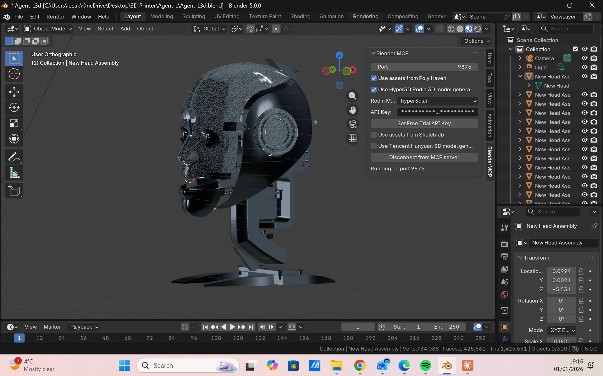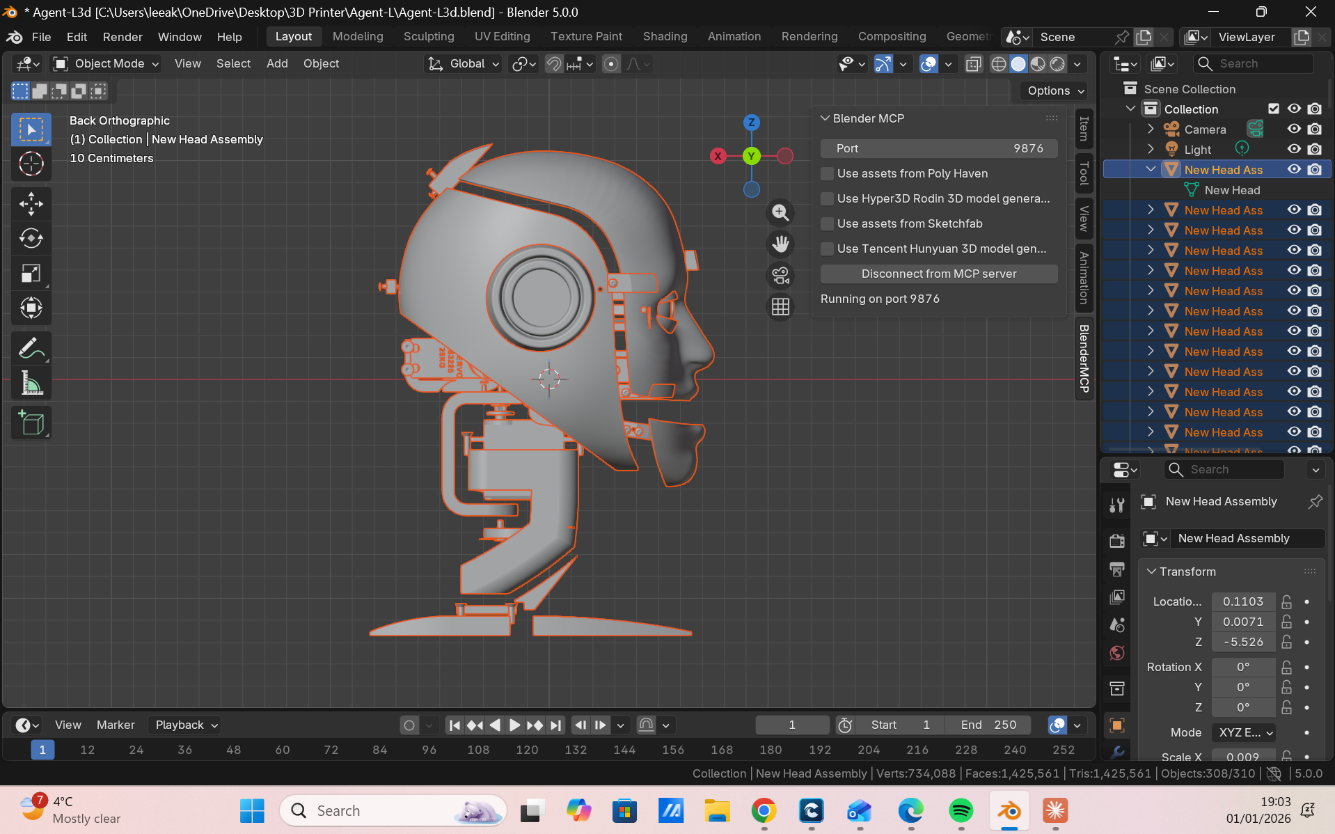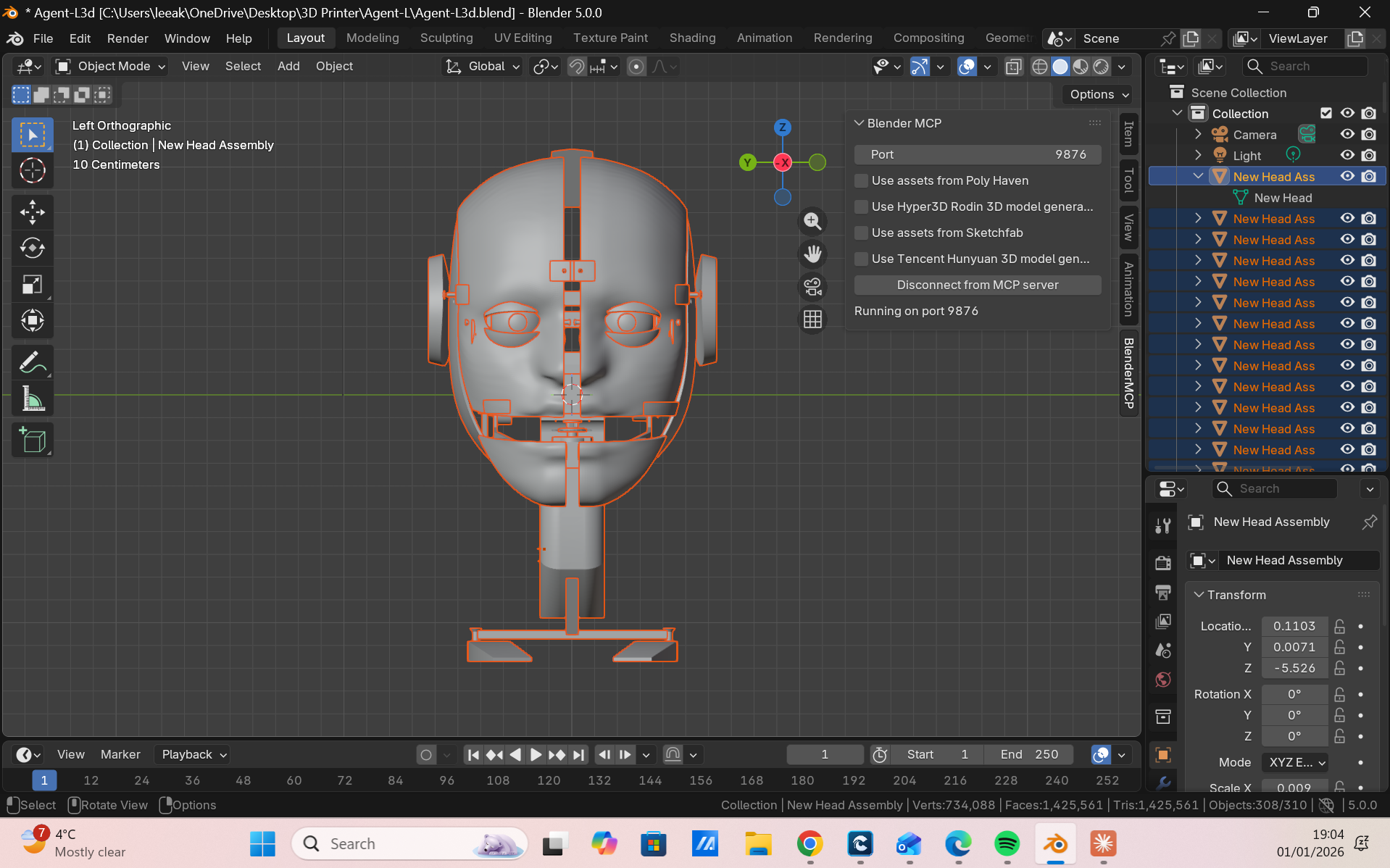 Lifelike facial mechanics driven by synchronized servos.